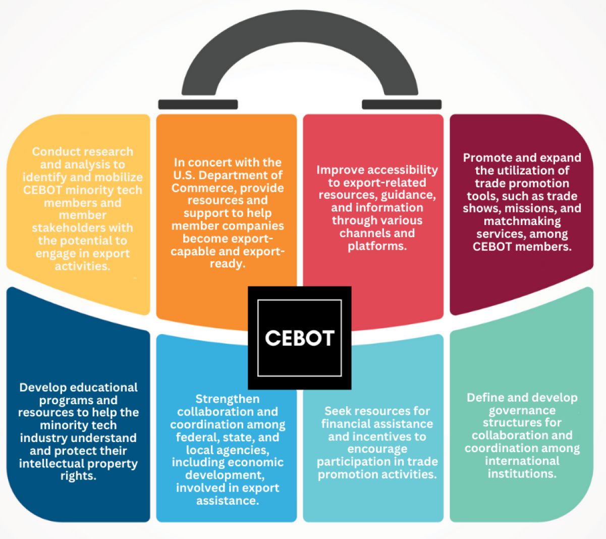 The Council Exchange Board of Trade (CEBOT) brings a rich history of advocacy and procurement policy guidance within the federal policy ecosystem. The $110 Billion Minority Technology Industry is a source of jobs to over 550,000 professionals both in the United States and abroad.