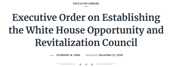 This executive order establishes a White House Council to carry out the federal goverment's agency plan to encourage public and private investment in urban and economically distressed areas, including qualified opportunity zones.