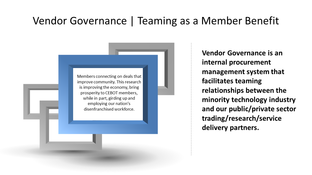 AccelNow is a marketing and research partnership between CEBOT and Chubb. Chubb is the world’s largest publicly traded P&C insurance company and the leading commercial lines insurer in the U.S. The CEBOT-Chubb investor member partnership initiates a national supplier scouting, certification, and due diligence program with the largest 3,000 U.S. minority technology companies. Data enhancement research is regionally coordinated through Chubb's management team, coordinated by CEBOT's national broker the Council Exchange Benefits, Corp.